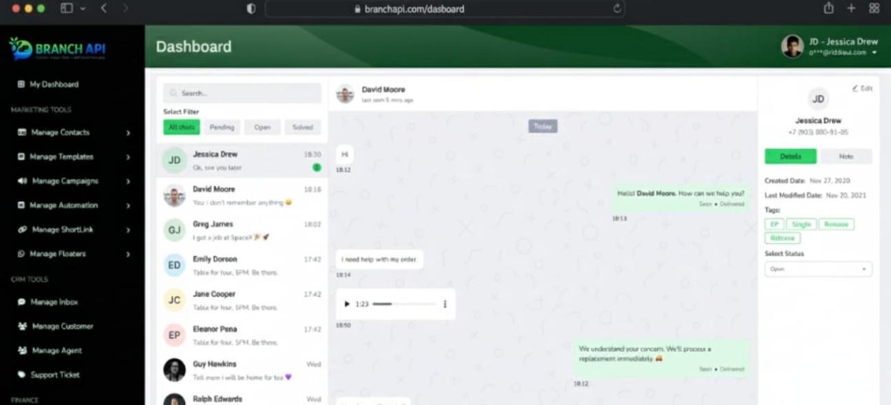 Branch Api is a complete cross-platform WhatsApp CRM and marketing tool that helps businesses manage conversations, automate customer engagement, and run marketing campaigns through WhatsApp.